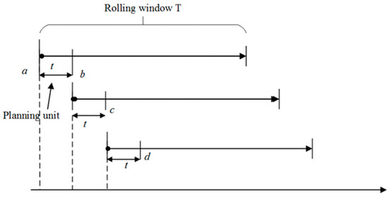 - Step 1: The length of a rolling window is T. Look ahead for T and update the tasks information in the rolling window. We also define a selected time t from the starting time of a rolling window as a planning unit. As shown in Figure 2.