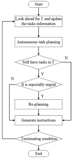Task planning is an important part of satellite task control platform. Its main function is to solve the problem of resource utilization and task conflict in the task management of satellites, and to improve the service efficiency of the resources. In the traditional task planning, the ground stations calculate the task sequence in advance, based on the task requirements and satellite status estimation, and then upload it to the satellite for execution [1]. Therefore, the effectiveness of satellites cannot be fully realized in the current control mode, because the control instructions that satellites rely on are issued by the ground control system. Satellites cannot make a rapid response to the dynamic changes of the requirements due to the satellite–ground communication delay, time window, and other factors, which result in an inevitable waste of time and resources.