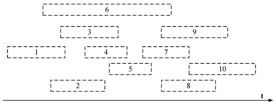 We define as the influence set of . . Let the time windows in the genome all meet the time constraints, that is . If a genome = [6, 1, 3, 4, 2, 7, 5, 9, 8, 10], according to the time constraint check rules, the selected genes are [1, 2, 5, 8, 10].
