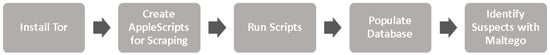 After developing an automated scraping methodology, we tested it on a specific Dark Web marketplace. An analysis of the scraped data provided the basis for a subsequent investigation of suspected criminals (illicit vendors). The results from this testing demonstrate the efficacy of the proposed analytical framework (Figure 1) for automating data collection and making that collection process more accessible to Dark Web marketplace investigators. This framework is different from other methods, which are limited in availability and may incur significant costs. The framework is comprised of a number of steps, which are reported in Figure 1 [36]. The outcomes of our study are relevant for both academics studying the recent growth of Dark Web marketplaces, and for public and private investigators seeking to examine the nefarious activities of criminals operating on the Dark Web. In terms of Dark Web marketplaces, we have considered the recent attention of the Bright Internet, which seeks to realize a safer Web for individuals [37], thereby benefiting society.