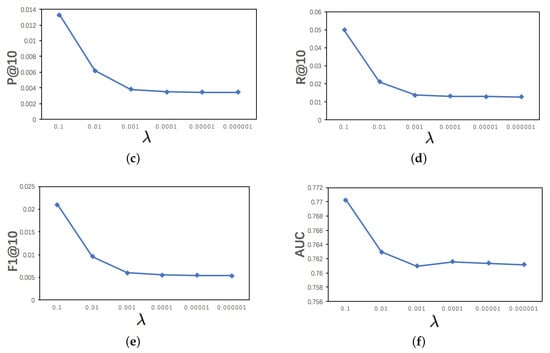 - Rendle, S.; Freudenthaler, C.; Gantner, Z.; Schmidt-Thieme, L. Bpr: Bayesian personalized ranking from implicit feedback. In Proceedings of the Twenty-Fifth Conference on Uncertainty in Artificial Intelligence, Montreal, QC, Canada, 18–21 June 2009; pp. 452–461. [Google Scholar]