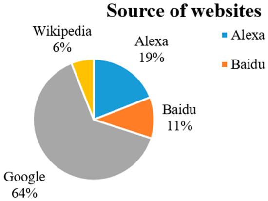 - Alex Top 500 Global Sites. Available online: https://www.alexa.com/topsites (accessed on 28 July 2018).