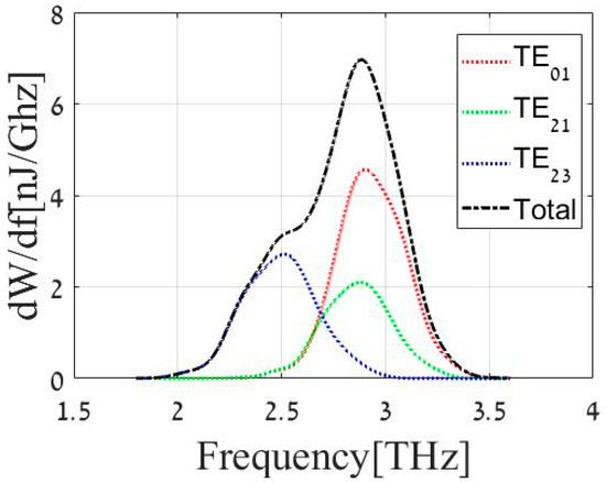 The algorithm can calculate any TEmn or TMmn type. The article will focus on only three of them: TE01x, TE21x, TE23x. These are most dominant modes in the FEL system (around TE01-33%, TE21-22%, TE23-30% of the total energy participant [33]) as can also be seen in Figure 3.