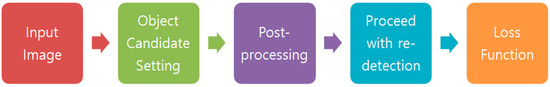Figure 3 shows a flowchart of our proposed disaster victim detection task. False positive (FP) and false negative (FN) classification results are obtained when the first detection operation is performed using YOLOv3, and then the secondary detection operation is performed using RetinaNet. The secondary detection operation is performed after excluding the operation results, classified as true positive (TP) and true negative (TN) in the primary detection operation.