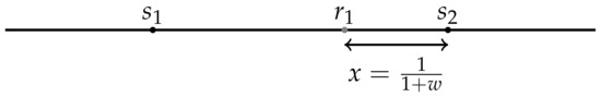 Let . As shown in Figure 3, assume that and . The first request arrives at position . If is matched with sensor , the last request arrives at position , implying and . Thus,