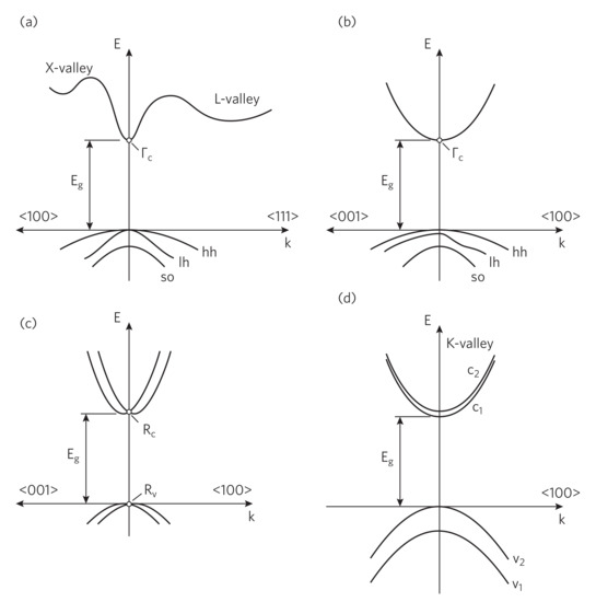 - Yu, P.Y.; Cardona, M. Fundamentals of Semiconductors: Physics and Materials Properties; Springer: Berlin/Heidelberg, Germany, 2005. [Google Scholar]