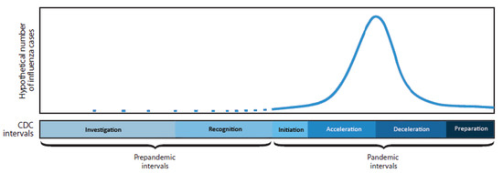 - Holloway, R.; Rasmussen, S.A.; Zaza, S.; Cox, N.J.; Jernigan, D.B. Influenza Pandemic Framework Workgroup. Updated preparedness and response framework for influenza pandemics. Morb. Mortal. Wkly. Rep. Recomm. Rep. 2014, 63, 1–18. [Google Scholar]