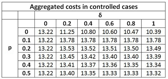 Experiment 5. In this experiment we show how the aggregated costs change in the controlled cases for different parameter values and (see Figure 26).