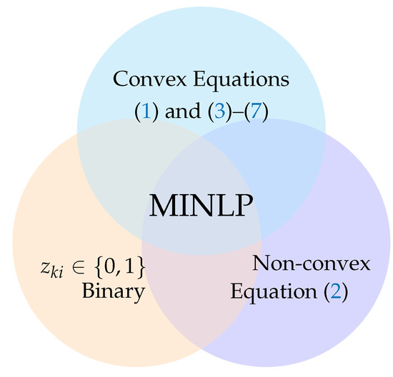 At this point, the problem of the optimal location and sizing of capacitor banks in an electrical distribution system is convexly treatable via MI-SOCP, whose mathematical characteristics are summarized in Figure 3.