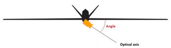 UAV camera position on the UAV showing the angle of the optical axis (direction where the camera is targeted) relative to the plane of the UAV. An angle of 90 between the two means that the camera is pointing directly downwards. (Source: [20]).
