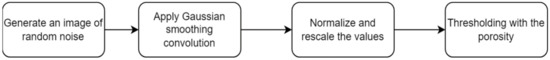 where and are the sizes of the binarized image. Figure 3 shows a summary of the porous media generation process.