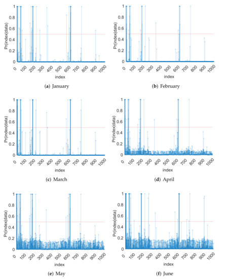 Plots of the posterior marginal inclusion probabilities: January–June.