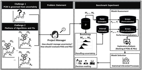 Based on the previous considerations, the task of comparing a set of PSs in order to decide upon the superiority of a specific PS among competing ones plays a predominant role in benchmark experiments and thus appropriate inferential procedures should be engaged in the process [43]. Regarding this, the findings from related literature designate a wide range of statistical methodologies that can be used for inferring about whether the observed divergences in prediction performances for a set of competing PSs can be generalized to the population of cases (e.g., projects) with similar characteristics [40,43,56,57,58,59]. Certainly, the choice of the most appropriate statistical inferential mechanism is a critical decision that depends solely on the elements of the experimental design (or design of experiment-DOE) synthesizing a benchmark study [43] and the type of the response for which a practitioner wishes to derive conclusions.