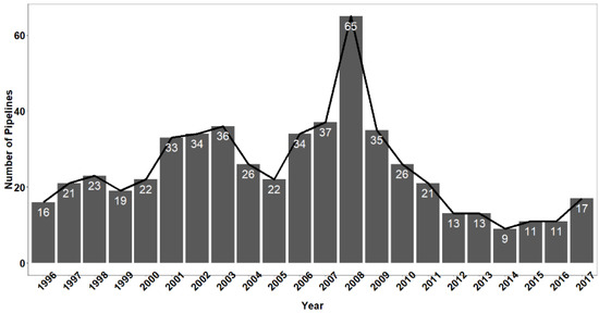 - Rui, Z.; Metz, P.; Reynolds, D.; Chen, G.; Zhou, X. Historical pipeline construction cost analysis. Int. J. Oil Gas Coal Technol. 2011, 4, 244–263. [Google Scholar] [CrossRef]