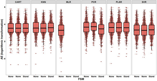 Secondly, different feature scaling mechanisms may have a significant but different impact on the quality of statistical and ML algorithms and thus this effect should be examined, independently, by the practitioners, when building prediction mechanisms concerning point and interval estimates of cost. In our benchmark study, there was noted a statistically significant interaction effect between algorithms and feature scaling mechanisms on the absolute error distributions of models, when used as point estimators of the cost function, . This was also the case for the width () and Winkler score () loss functions, when the candidate models were evaluated in terms of their ability to produce accurate interval estimates. In contrast, the generalized linear mixed models indicated that the ability of the models to provide interval estimates containing the actual cost value was only affected by the type of the applied algorithm, .