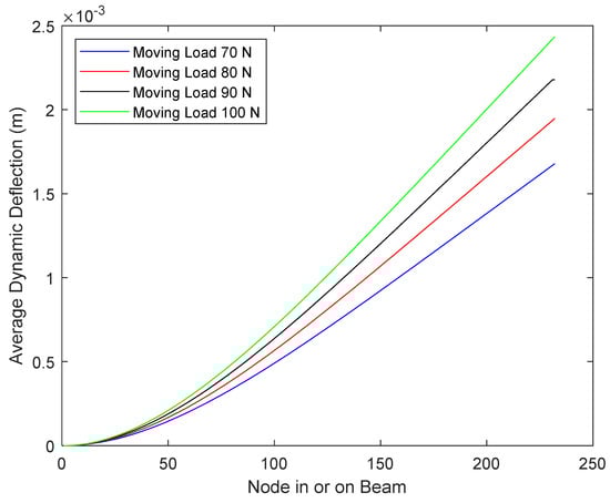 where = the average displacement value at point i for the whole time T; = the displacement value at point i at time step j. i = Node label, 1, 2…, m; j = Number of time steps along which the load moves from one fixed end to the other open-end of the beam, 1, 2…, N.