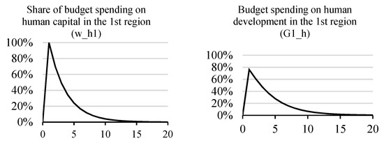 where is the average share of budget spending on human capital; is the percentage deviation of the share of budget spending from the equilibrium value.