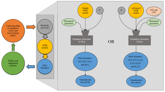 Figure 2 this illustrates the flow of how this dynamics generator works on the estimation of all state dynamics, including the time-dependent rate of transmission by means of the empirical fit to Richard’s Curve.