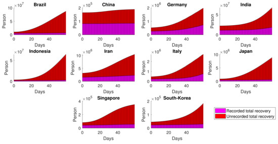 The performance of is related to the ratio between the recorded and unrecorded recovery. Figure 13 shows that other than China and Germany, the proportions of unrecorded recovery are much higher than the recorded recovery. This finding is consistent with the fact that the lower the values of for certain countries, the higher the share of unrecorded total recovery.