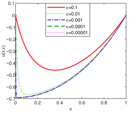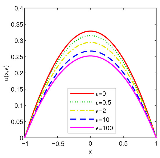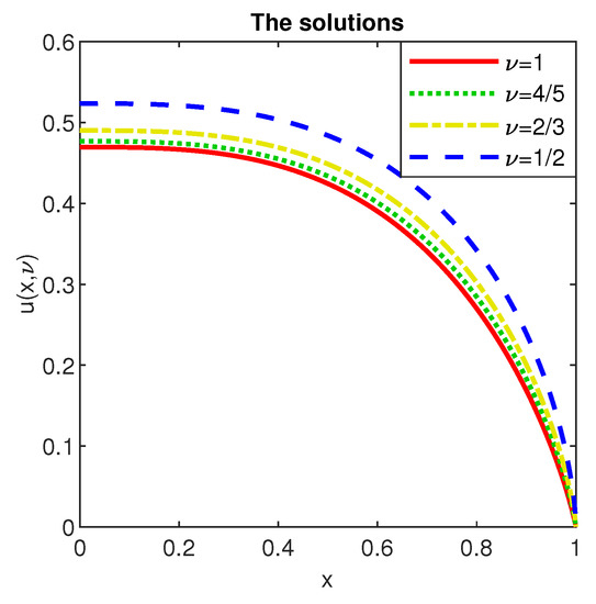 For higher values of than 1, Chebfun could not solve the problem even though the tolerance was considerably lower. This is not the case for the exponent .