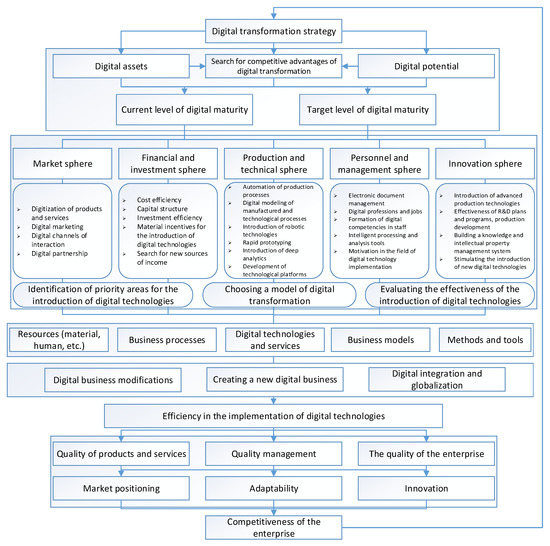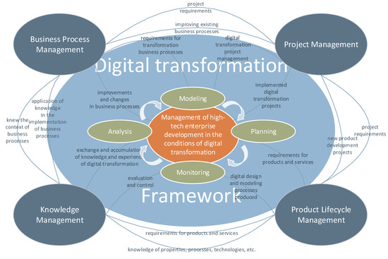 The concept of managing the development of a high-tech enterprise in the context of digital transformation is shown in Figure 2.