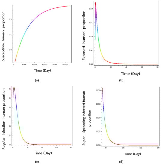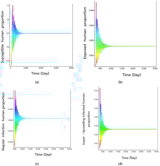 | recovery rate of super-spreading infected humans | 0.1–0.7 [20,21,22] |
