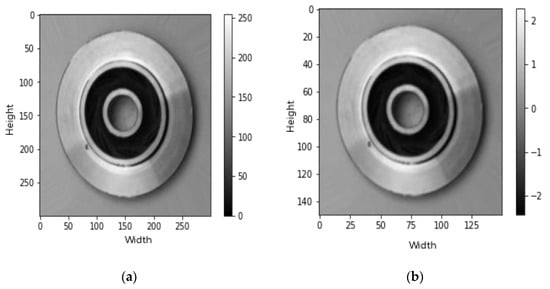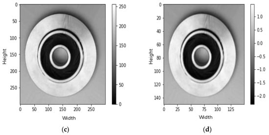 The original dataset was collected for the purpose of data analysis; its background had already been normalized. Thus, in the preprocessing stage, a simple technique was applied. Each image of the dataset was in grayscale, and it was 300 pixels wide and 300 pixels high. We resized the images from 300 × 300 to 150 × 150 to improve the learning speed of the model. Before we applied data standardization, individual pixels ranged from 0 to 255 before preprocessing. To standardize, we calculated the mean standard deviation of the pixels and applied data standardization to our dataset.