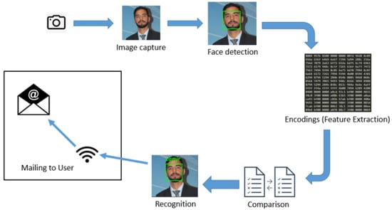 The recent trends for security surveillance are now shifted to the use of IOT-based devices and face recognition is a building block for such smart devices [42,43]. These smart devices are connected through the Internet and can provide many features that are not available in traditional face recognition systems; they can also provide a smart home network [42]. These smart IoT-based devices can be controlled through the Internet while using a web interface or a mobile app. According to [21], Raspberry Pi is a type of smart embedded device and a camera can be used to record video and capture images. Furthermore, a motion detector sensor can assist in detecting the motion. The detected details are sent to the admin by using the Wi-Fi module of this smart embedded device.