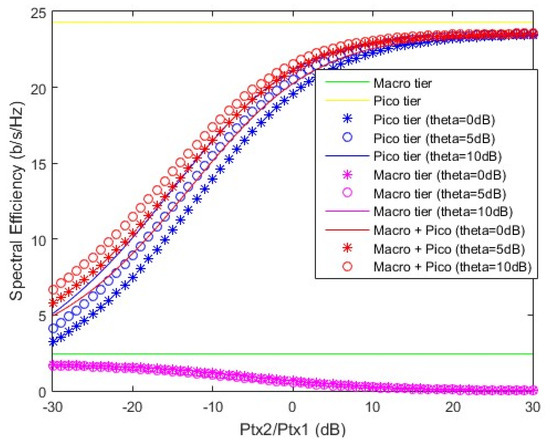 Finally, considering various transmit power values within the pico tier with constant macro-tier transmit power, SE exhibits a rising trend with regard to the transmit powers.