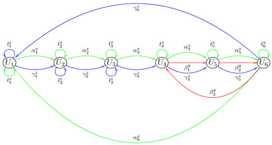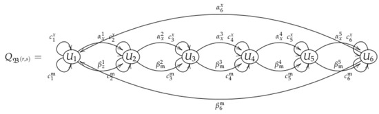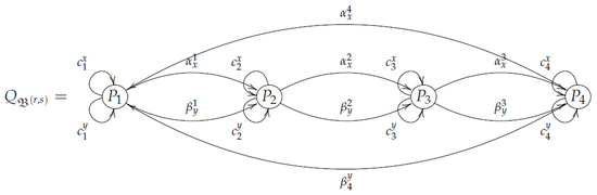 The basis of the algebra associated with the quiver Q shown in Figure 2 is , where is the set of primitive idempotents, with and if .