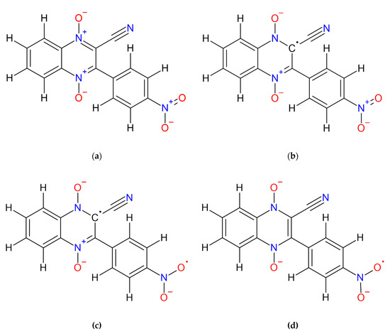 - Miller, E.M.; Brazel, C.J.; Brillos-Monia, K.A.; Crawford, P.W.; Hufford, H.C.; Loncaric, M.R.; Mruzik, M.N.; Nenninger, A.W.; Ragain, C.M. Reduction Potential Predictions for Some 3-Aryl-Quinoxaline-2-Carbonitrile 1,4-Di-N-Oxide Derivatives with Known Anti-Tumor Properties. Computation. 2019, 7, 6. [Google Scholar] [CrossRef]