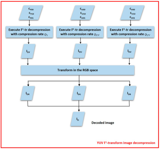 In Figure 2 the flow diagram of the YUV F1-transform image decompression algorithm is schematized as well.
