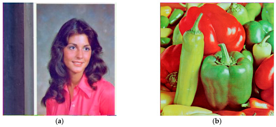 The dataset is made up of over 50 color images of different sizes. For brevity, we show in detail the results obtained for 256 × 256 source images 4.1.04 and the 412 × 512 source image 4.2.07 shown in Figure 3.
