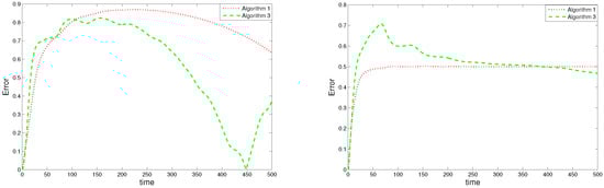 It is worth pointing out that Algorithms 3 and Algorithms 2 are very similar. The main difference is that at Step 3, instead of the SVD of matrix (in Algorithm 2), the SVD of matrix , defined by (24), is used, plus one matrix multiplication. This leads to an improvement in the computational efficiency of Algorithm 3 over Algorithm 2. In Algorithm 2, we apply the SVD of a matrix with dimension , while in Algorithm 3, we use the SVD of a matrix, where . Next, we compare the computational complexity of the standard algorithm for the DMDc method (Algorithm 1) and the improved algorithm (Algorithm 3). The two algorithms contain the same number of steps and the computational complexities of the first two steps and the fifth step are comparable. The main difference is in calculating the SVD at Step 3 (in the two algorithms), see Table 1.
