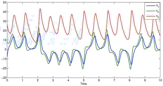 We have used the following parameter values: and . The time-step and sinusoidal forcing with are used. The initial condition is . Collected data consist of snapshots, i.e., the data matrices X and Y are of the dimensions , and is of dimensions . Figure 1 depicts the dynamics.