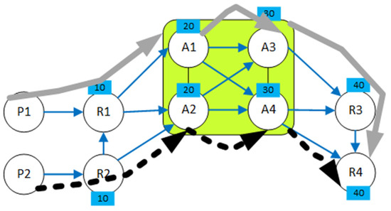 - Suurballe, J.W. Disjoint paths in a network. Networks 1974, 4, 125–145. [Google Scholar] [CrossRef]