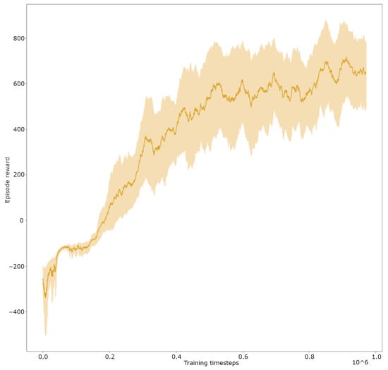 In order to obtain the best performance, the effect of changing PPO’s hyperparameters such as the learning rate, batch size, discount factor, whether to use generalized state-dependent exploration (gSDE), etc., was studied. Through this process, the optimal combination of hyperparameters was found to be those shown in Table 2.