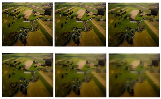 As seen from the algorithm’s first pass, the image becomes quite abstract, but some of its content is still present. However, subsequent re-applications produce only random fragments of different colors and shapes in size and shape but of the same texture. The last images of the median transformation can be used as tests only when the images of the objects of attention are quite small, consisting of elements of different color areas close to the background color. They generally approach them but do not merge with them. They must be sufficiently visible and guarantee their detection.