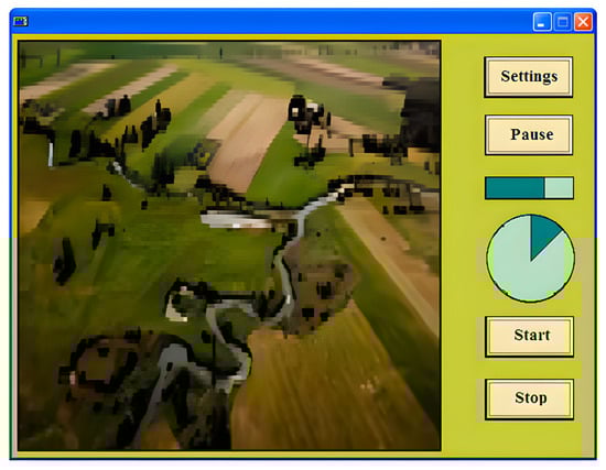 An aircraft over some area obtained the image to be used as a background. It is clear and contains many small colorful fragments. However, as we use different variants of this algorithm, we obtain an imitation of this image that is practically devoid of any logic in its fragments, and the visual analyzer cannot focus on anything; the image is abstract. The tasks of the research should determine the choice of option.
