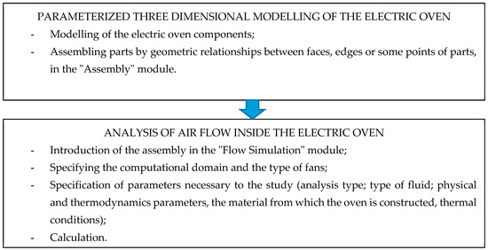 The purpose of the present study was to simulate the flow of hot air inside the above-mentioned electric oven, according to the methodology presented in Figure 1.