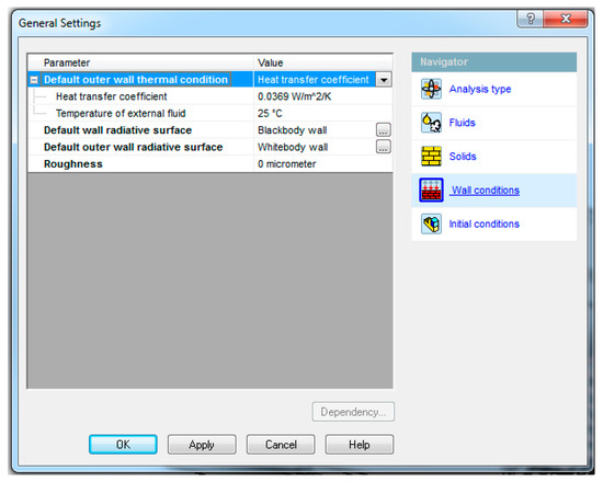 Figure 8 shows that in the case of external conditions, there was set a heat transfer coefficient calculated at 0.0369 W/m2K. The coefficient was calculated with the relation [36]: