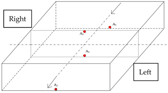 Diagram of the baking chamber of the electric oven and the areas where the temperature measurements were made. A1—down feeding area; A2—lower evacuation area; A3—upper middle area; A4—lower middle area.