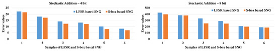 | LFSR-based stochastic addition—8 bit | S-Box-based stochastic addition—8 bit | ||||