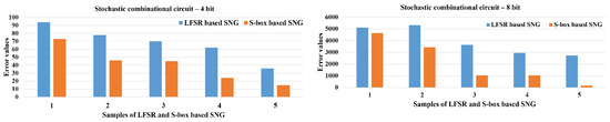 - We have considered two different SNGs and carried out accuracy analysis for both namely LFSR-based SNG and S-box-based SNG. LFSR-based SNG is the traditional method used for generating stochastic numbers. S-box-based SNG is the new method used to develop the stochastic system performed here.