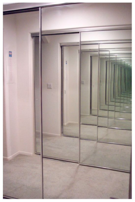The pattern of nested boxes in Figure 2 is reminiscent of the observed patterns that we see between facing mirrors, as in Figure 3 (compare [2,4,5]).