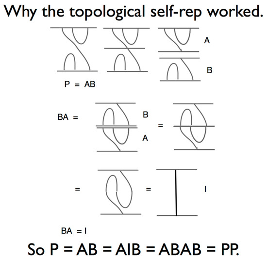 Anything that ‘returns to itself’ is a fixed point, just as anything that returns the negation of itself is a ‘paradox’. Recall also now that DNA does not just reproduce itself, it also produces RNA by controlled enzyme action, and the RNA participates in production of protein in the cell. So the DNA as a fixed point, as self-replicating, is also productive and uses its code for much more than self-replication.