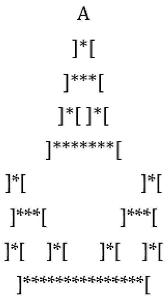 While we write J = <<<<<…>>>>>, indicating an infinite nest of brackets, we do not give a formal definition here of the type of limit process that is intended to be performed to obtain the infinite nest. There is no actual infinite nest of brackets in the plane. For the purpose of our informal presentation, the reader can imagine this construction and explore how it can be compared with mathematics, which the reader is familiar with.
