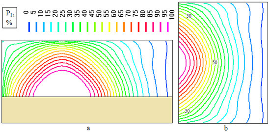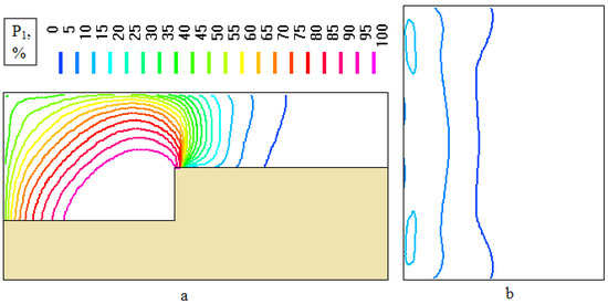 Lethal probability fields for option V1: (a) plane YOZ; (b) plane XOZ (a working place).