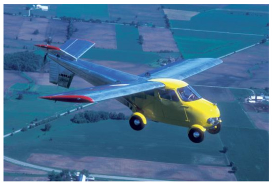 ConvAirCar (Figure 4): in the 1940s, Consolidated-Vultee developed a two-door sedan equipped with a detachable airplane unit. The ConvAirCar debuted in 1947 and offered one hour of flight and a gas mileage of 45 miles (72 km) per gallon. Plans to market the car ended when it crashed on its third flight [19].
