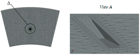 At the same time, there shall be at least three grid elements for the minimum geometric element. Convergence of the task is carried out by reducing the grid in such a way that the results do not differ by more than 0.5%. The accepted thickness of the oil film is 0.05 mm. Due to the fact that the depth of defects exceeds this value in the defect zones, additional forces will occur on the end surfaces.